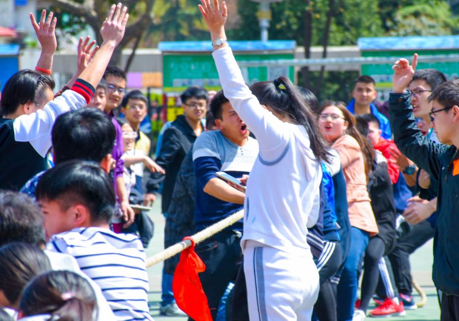 短暂的热身运动之后,随着裁判员一声哨响,本次运动会第一项趣味项目——跳大绳开始了。每组十人,接力跳过大绳,规定时间内跳绳次数多的队伍获胜。富有活力的运动员们轻盈起跳,在空中划出优美弧线,完美落地,展示了老员工蓬勃的朝气,如初生的太阳,散发光芒。集体项目拔河位于最后,虽然已到正午,可大家热情愈发高涨,阵阵加油呐喊声将本次运动会推向新的高潮。在运动会的比赛项目中,除了个人的田赛和径赛,还有团体的趣味比赛,如袋鼠跳,负重接力,团结协作,不仅让同学们锻炼了身体,还增强了同学们的合作的能力,增进了同学们的友谊。