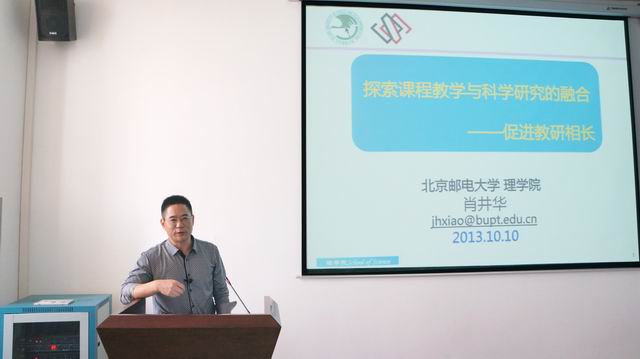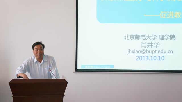 10月11日下午,第十七期“恒元物理学讲座”在致知楼英国365集团六层学术报告厅举行。北京邮电大学理公司肖井华教授应邀作了题为《探索课程教学与科学研究的融合——促进教研相长》的学术报告,公司师生逾百人参加了报告会。报告会由屈世显教授主持。