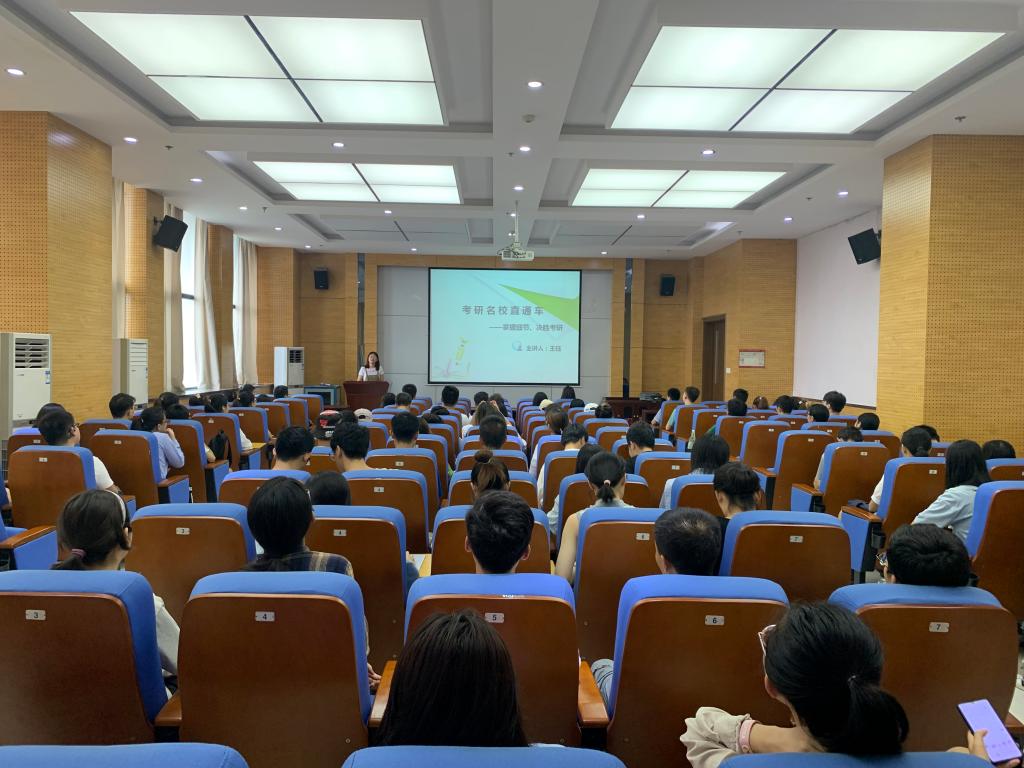 首先,高霏结合具体数据就目前考研形势进行了简要分享,面对近年来不断增长的考研人数及考研压力,她勉励同学们勤奋学习、脚踏实地,一切努力都指向自己无限可能的未来。随后,王钰从院校选择、专业分析、考研方法和时间安排四个模块分别就同学们关注的重点问题进行了详细介绍,着重强调了关注考研公司官网信息以及考研各阶段的备考方向。他还结合数据分析了近年公司考研形势,并针对考研过程中院校选择、导师类型、地域选择、科目复习策略做出了全面深度的解析,鼓励同学们科学精准定位,选择符合自身实际的报考公司。他提出:“考研三大要素:目标,选择,努力”“不能打没有准备的仗”,老师恳切的经验之谈给予了全体同学们极大的鼓舞,为预备踏上考研路途中的大三学子点亮了一盏明灯。