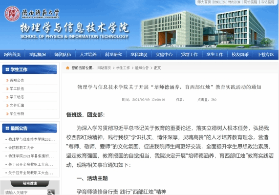 为深入学习贯彻习近平总书记关于教育的重要论述,落实立德树人根本任务,弘扬公司“西部红烛精神”,践行公司“学识扎实、情怀深厚,灵魂高贵”的人才培养教育理念,营造“尊师、敬师、爱师”的文化氛围,促进公司师生间更好交流,全面提升员工思想政治素质,坚定教育强国、教育报国的自觉担当。根据《关于在员工中举办“师德涵养月”教育实践活动的通知》要求,公司于9月9日发布《英国365集团关于开展“培师德涵养,育西部红烛”教育实践活动》的通知,高度重视、精心组织、深入开展师德涵养教育,提高公费师范生职业能力水平,积极践行“西部红烛精神”,引导员工争做“有理想信念、有道德情操、有扎实学识、有仁爱之心”的好老师。