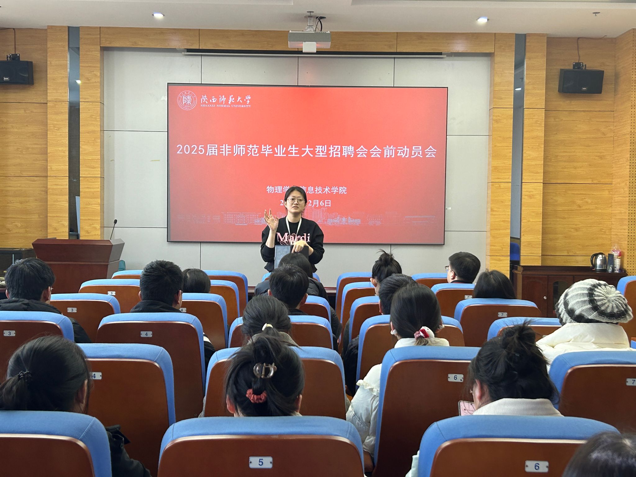 会上,辅导员高菀婧首先指出召开此次会议的必要性与重要性,介绍了此次大型招聘会来校单位的基本情况,鼓励同学们积极前往投递简历。接着围绕就业形势、就业市场特点与参会员工做了交流,并叮嘱毕业生结合自身情况合理定位,关注就业信息,抓住时机,果断决策。她还强调了就业准备的重要性,鼓励同学们明确求职目标,积极参与招聘活动,抓住本次大型招聘会的机遇。最后叮嘱同学们要提前做好心理准备,积极准备面试,并且对到会的每一位员工都进行了简历指导及岗位推荐,帮助同学们提升求职竞争力。