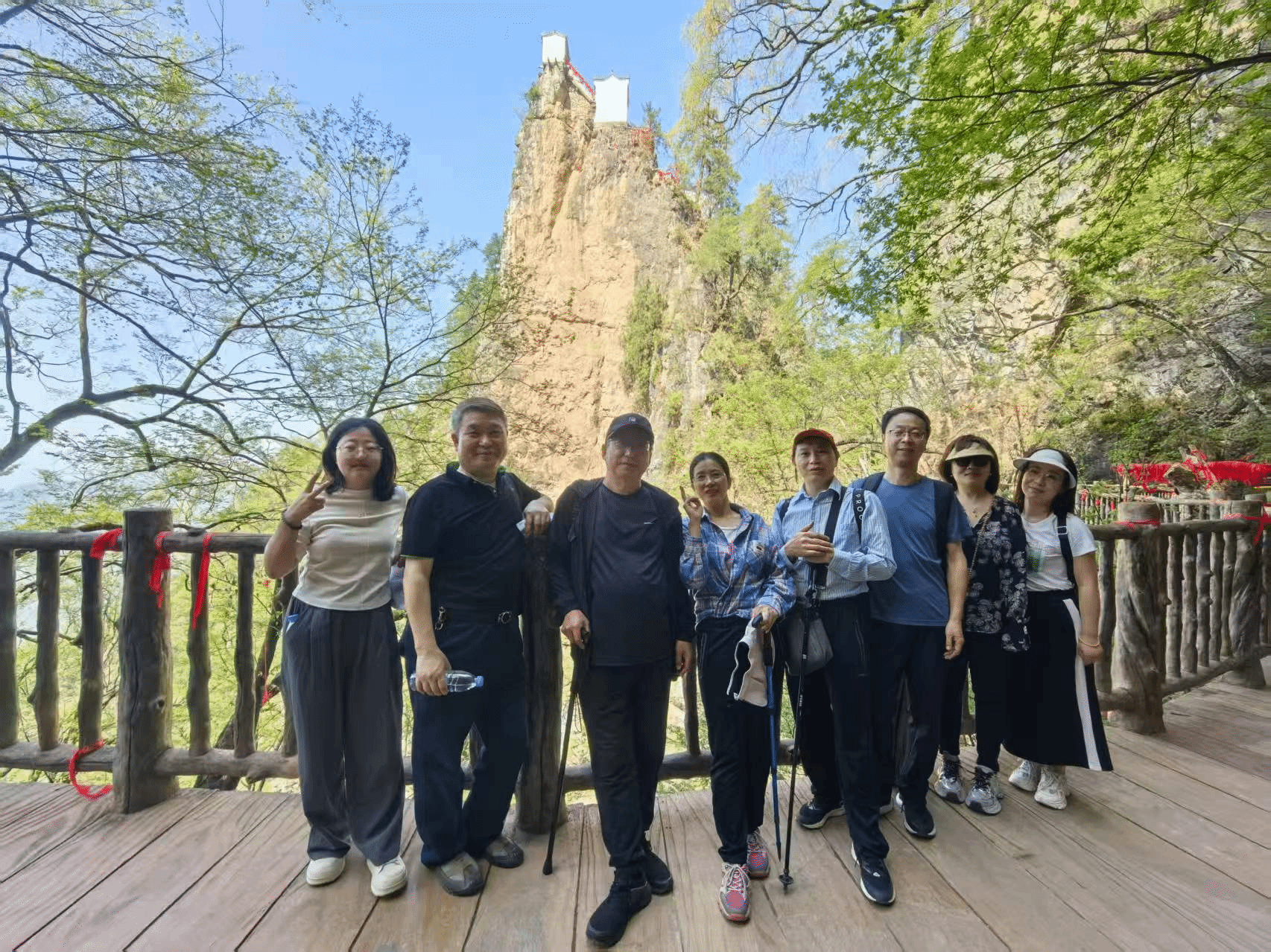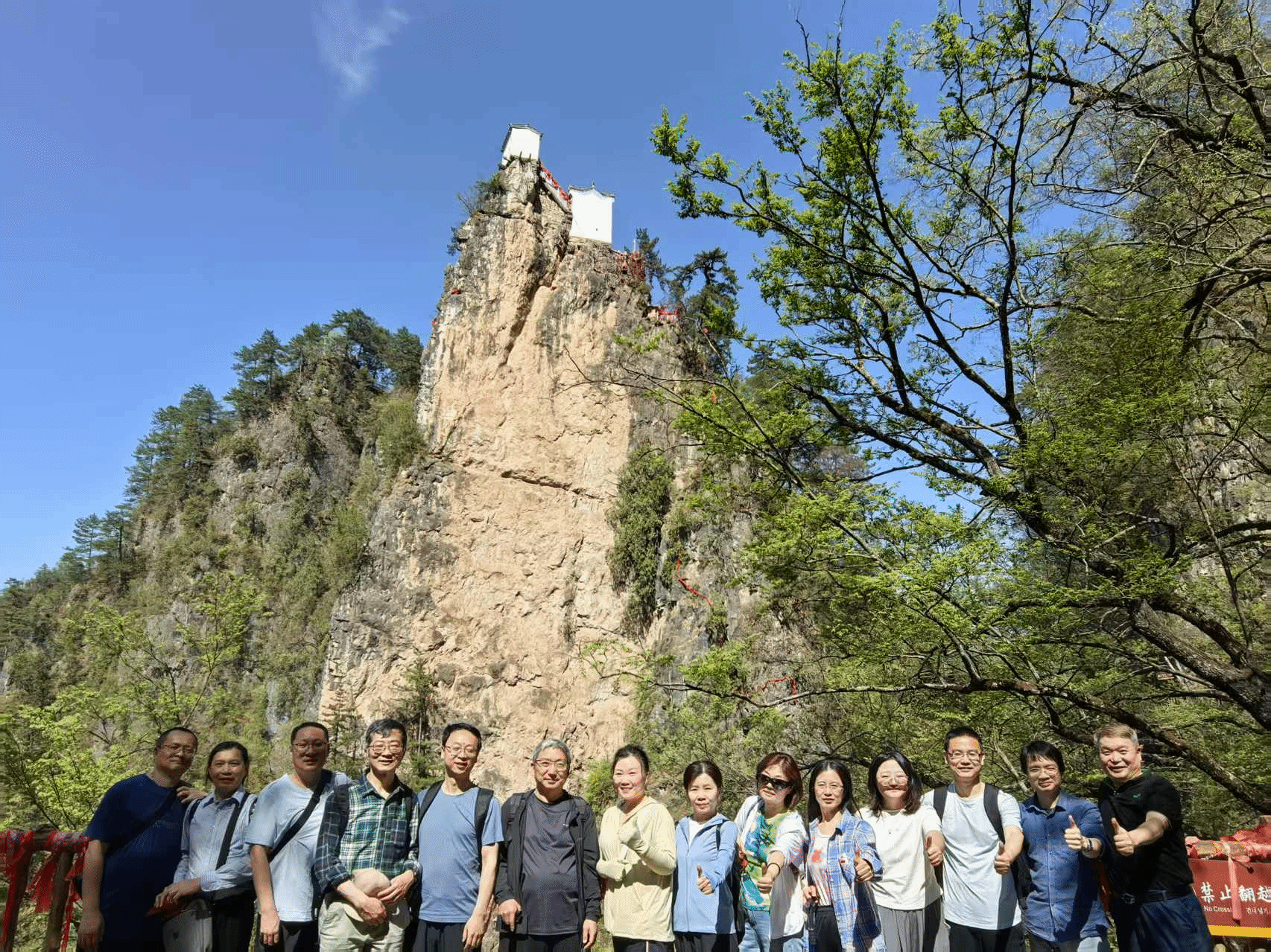 午后,全体人员赴塔云山开展户外活动。大家沿着蜿蜒的山路前行,一路欢声笑语,一路美景相随。塔云山以险峻奇秀闻名,主峰金顶建于万仞崖壁之上,被誉为 “秦岭第一仙山”。登山过程中,教职工分组协作,相互鼓励,沿着陡峭的石阶奋勇攀登。沿途,大家惊叹于奇峰异石、云海松涛的自然奇观,更在团队互助中体会到 “人心齐、泰山移” 的真谛。