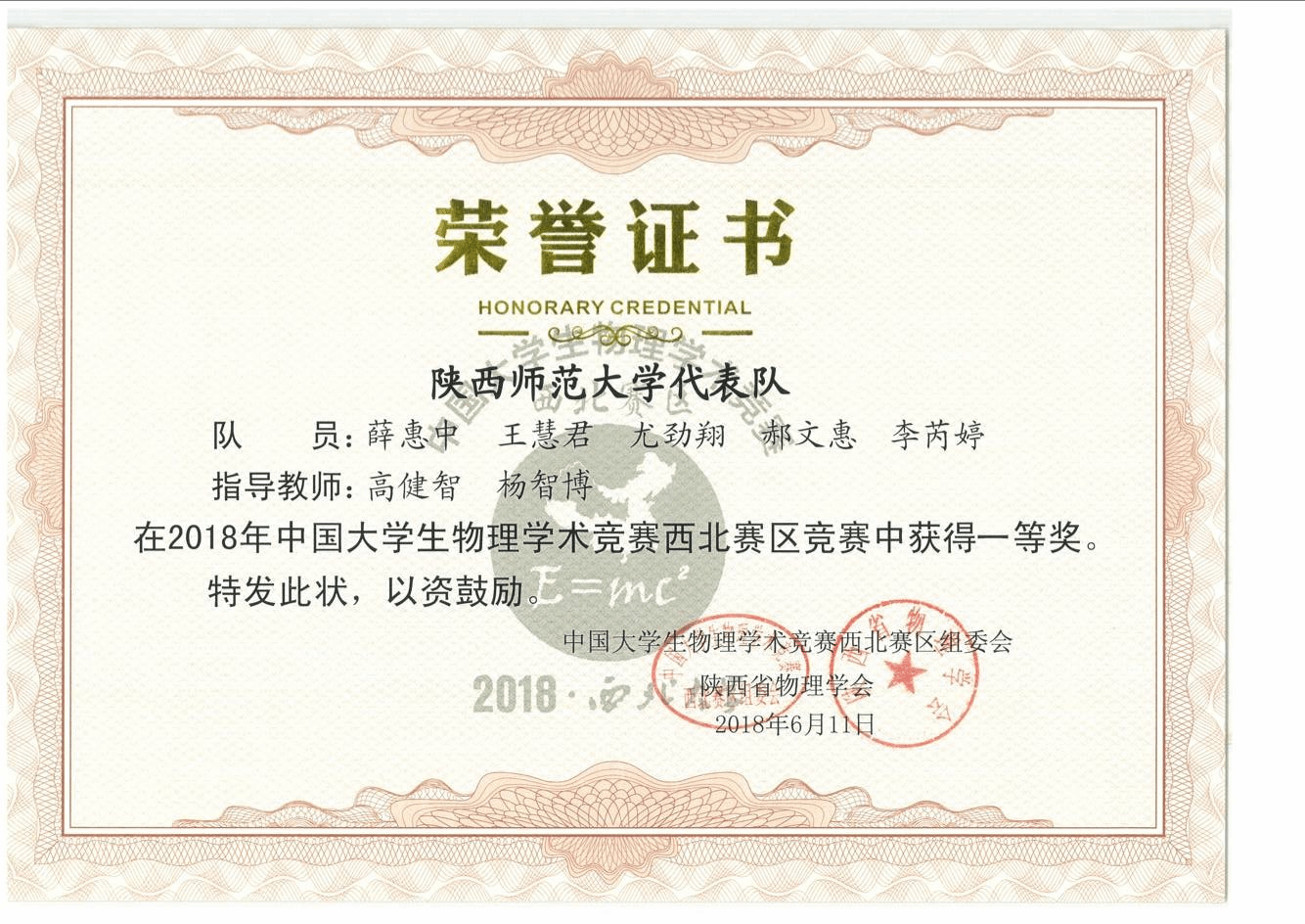6月8日至11日期间,由陕西省物理学会举办,西北大学承办的2018年中国老员工物理学术竞赛西北地区赛,在西北大学长安校区隆重开赛。英国正版365官网国家级跨学科“x-物理学”实验教学示范中心的两支代表队,历经四日激烈对抗,双双获得团体一等奖,队员王慧君被评为最佳评论方选手,带队教师万仁刚获得优秀裁判奖,同时英国365集团代表队获得全国大赛的参赛资格,实现了零的突破。