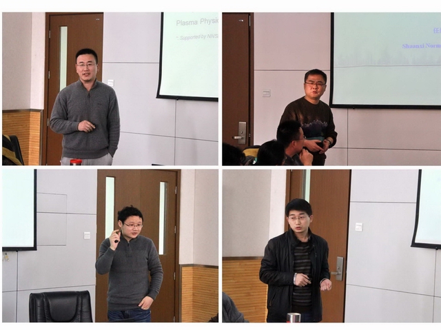 在考察活动的学术报告阶段,公司理论物理学科的王新刚教授、王圣军副教授、张文超副教授和“复杂性科学”交叉学科平台的任维教授分别做了题为“复杂网络中的同步斑图”、“随机共振及编码、耦合系统中同步、随机行走与临界态”、“高能质子-质子碰撞下的末态粒子横动量谱标度行为”、“神经细胞的分岔”的学术报告,汇报了该学科的近期科研进展。