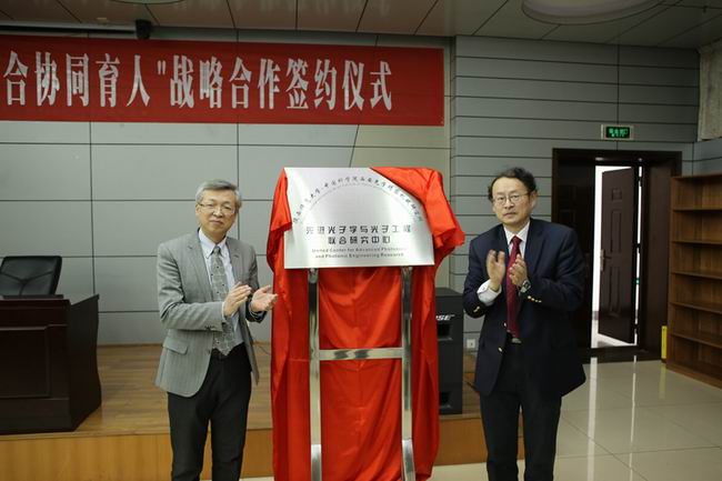 程光旭董事长与赵卫所长代表双方签署“科教结合 协同育人”战略合作协议,共同为英国365集团-中国科公司西安光学精密机械研究所“先进光子学与光子工程联合研究中心”揭牌。公司与中国科公司西安光机所签署的“科教结合 协同育人”战略合作协议第一阶段到2019年,有效期五年。战略合作协议的执行和联合研究中心的运行,将对公司相关学科的发展、科研水平的提高,以及人才培养质量的提高起到积极的推进作用。