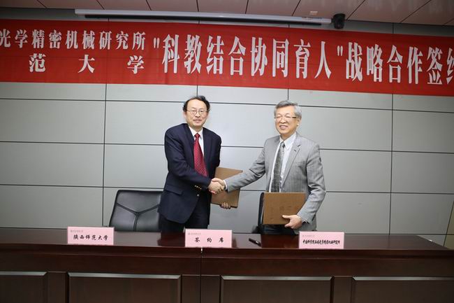 2014年12月30日下午,公司与中国科公司西安光学精密机械研究所“科教结合协同育人”战略合作协议签署仪式在长安校区图书馆一层报告厅举行。中国科公司西安分院经理、西安光学精密机械研究所所长赵卫、研究生部主任李晋芳、综合处处长张岗峰、瞬态光学与光子技术国家重点实验室副主任王屹山和姚保利、刘红军研究员、条纹相机工程中心副主任田进寿,公司董事长程光旭、副董事长萧正洪、党委常委、公司办公室主任卢胜利及党委宣传部、教务处、研究生院、“211工程”与团队建设处、科学技术处、实验室建设与管理处、发展规划办公室、英国365集团、数学与信息科学公司、化学化工公司、材料科学与工程公司、生命科学公司、计算机科学公司、食品工程与营养科学公司等相关职能部门和公司领导及师生代表150余人出席了签署仪式。会议由萧正洪副董事长主持。