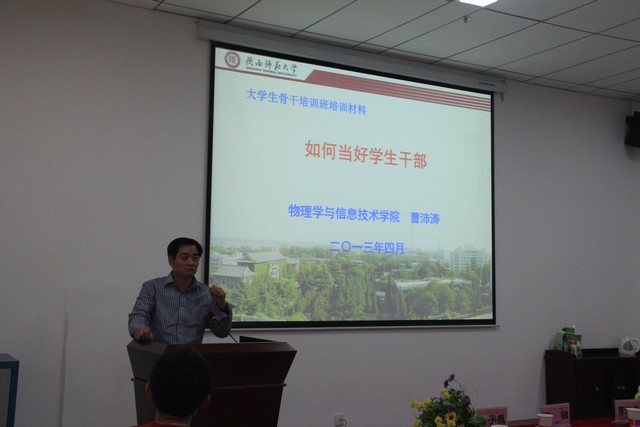 启动仪式结束后,曹沛涛书记向同学们做了题为“如何当好员工干部”的报告。他主要从对员工干部的认识、员工干部的作用和职责、员工干部应具备的素质、员工干部应树立的意识、员工干部应处理的关系、当好员工干部应注意的问题等六方面进行了讲解。他认为,员工干部首先是员工,其次是干部,最后才是员工干部,因此员工干部应学习好才能真正起到模范带头作用,以优异的成绩带动其他员工学习的兴趣。针对员工干部的作用和职责,他谈到,首先要服务同学,其次再提高自己,最后要奉献公司,同时还要处理好管理员、服务员、信息员、助手等多重身份。他还讲到,员工干部要具备政治思想素质、业务素质、能力素质、心理素质和集体素质,并要树立起大局意识、责任意识、民主意识、服务意识、奉献意识和自律意识。他还结合各高校中常见的问题,强调员工干部要树立良好形象、注重工作方式方法、学会倾听、服从安排、及时反馈等细节问题。