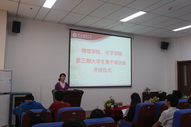 会上,曹宇巍主要就此次培训班的培训计划、培训时间、培训对象和培训内容作了简单介绍。本期培训班为期五个月,主要分为理论学习、社会调研、挂职锻炼和撰写报告等环节。旨在通过理论学习和社会实践相结合的培训,帮助员工骨干掌握党的理论创新成果,了解国情,认识社会,提高思想政治素质,坚定理想信念。陈钿和林雪主要就理论授课计划和员工分组情况作了介绍。王永革副书记在讲话中向参加此次培训的员工提出了几点要求:要不断提高政治素养,要勇于创新,要始终坚持理论与实践相结合,要珍惜机会,积极参与,并预祝此次培训圆满成功。