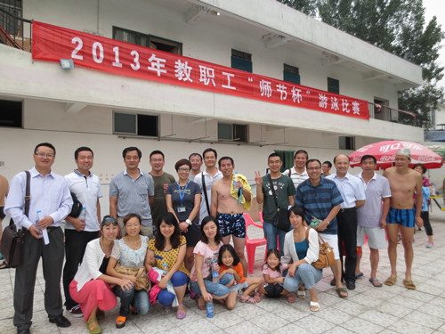 9月7日上午,校工会在雁塔校区游泳池举办了公司2013年教职工“师节杯”游泳比赛。曹沛涛书记带领由黄晓峰、王新刚、张中月、李继胜、刘蓉、曹宇巍、刘茜茹老师组成的代表队,在比赛中获得佳绩,夺得团体总分第一名和优秀组织奖。