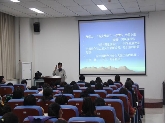 2012年11月27日晚7:00,公司在长安校区致知楼六层报告厅举行了解读“十八大报告精神”讲座。公司党委书记曹沛涛、党委秘书曹宇巍、2009级和2010级本科生辅导员周静、林雪及员工党员、入党积极分子参加了此次讲座。政治经济公司郭欣根教授应邀担任主讲人,讲座由党委书记曹沛涛主持。