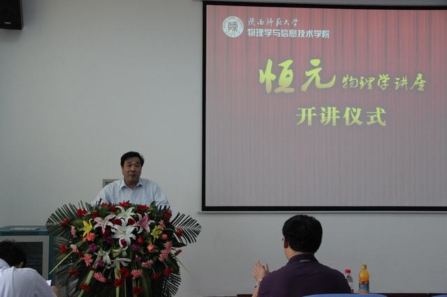 6月5日下午,英国365集团在长安校区致知楼六层学术报告厅举办首期“恒元物理学讲座”开讲仪式。著名物理学家、中国科公司院士孙昌璞教授出席开讲仪式并作学术报告。科技处副处长吴晓军,实验室建设与管理处处长郭建中,教务处副处长李贵安,英国365集团分党委书记杜叶婷、副经理李永放、吕现斌,英国365集团和兄弟公司的教授及师生逾百人参加了开讲仪式。仪式由英国365集团经理屈世显教授主持。