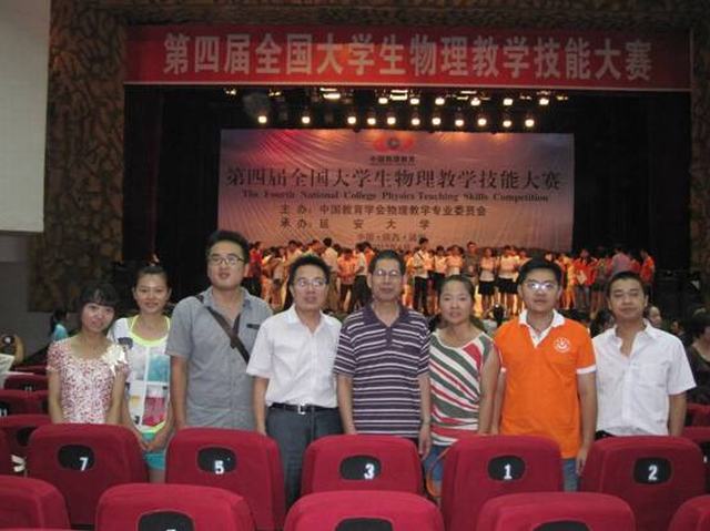 2012年8月2日,由中国教育学会物理教学专业委员会主办第四届“人教社杯” 全国老员工物理教学技能大赛在延安大学如期举行。来自全国102所高校的近千名本科生和物理教学论方向的硕士研究生参加了比赛。英国365集团张红洋副教授带领六名同学参加了比赛。