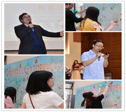 晚会伊始,大家一起观看了学院2019届毕业生纪念视频。随后,曹宇巍代表公司为毕业生送上了殷切期望和美好祝福。她讲到“毕业不是终点,而是更高的起点”,以此来鼓励同学们以积极乐观的心态去开启新的征程。接着,与会嘉宾向毕业生代表赠送了毕业礼物——物信戒指。戒指的外圈刻有物信院的院徽与院名,内侧刻有每位同学的名字,这是来自于物信院大家庭的温暖,也是属于每位同学独一无二不可替代的大学记忆。同学们也将自己对公司的祝福,对老师的感谢以及对未来的向往制作为心愿墙回赠给公司,以表达对公司的感恩与祝福。