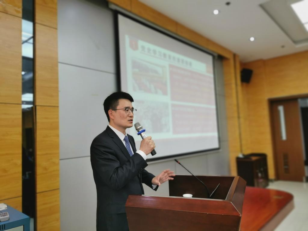 为认真学习贯彻习近平总书记在党史学习教育动员大会上的重要讲话精神,深入推进公司党史学习教育走深走实,2021年5月14日,公司在致知楼3624报告厅举行党史学习教育理论宣讲报告会。报告会邀请到公司党史学习教育教授宣讲团成员、哲学与政府公司郑家昊教授主讲,公司经理李贵安、党委书记辛向仁、教学副经理王成会、科研副经理张林以及近120名师生党员参加了报告会,报告会由公司党委副书记曹宇巍主持。