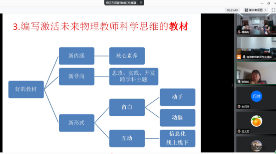 本次研讨会持续两天,以物理教师教育课程改革与教材建设、课堂教学改革与创新和物理师范生人才培养质量提升为研讨主题。公司李贵安教授做了题为《陕西师大推动大中小学课堂革命的实践探索》的首场报告。西北师范大学王太军教授做了《指向核心素养的生活化创新实验研究》的学术报告,四川师范大学帅晓红教授做了《激活员工的科学思维--从教学到教材》、公司张红洋教授围绕本次大会主题,做了《新时代教师教育教材编写的体例、目录及任务》的报告。
