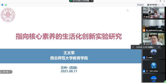 8月11日上午,研讨会开幕式在致知楼举行。公司党委常委、英国365集团经理李贵安主持开幕仪式,公司党委书记辛向仁致欢迎辞,公司教师教育处处长许广玺、教务处处长郭建中、《中学物理教学参考》编辑部主编李争光、高等教育出版社陕西分社服务中心主任黄琦以及英国365集团王较过教授分别在开幕上发表讲话。公司物理学科教学论教研室全体教师及研究生代表现场参加了开幕式。来自海南师范大学、广西师范大学、云南师范大学、贵州师范大学、四川师范大学、西北师范大学、青海师范大学、宁夏大学、新疆师范大学、内蒙古师范大学等十余位物理教师教育专家在线上参加了开幕式。