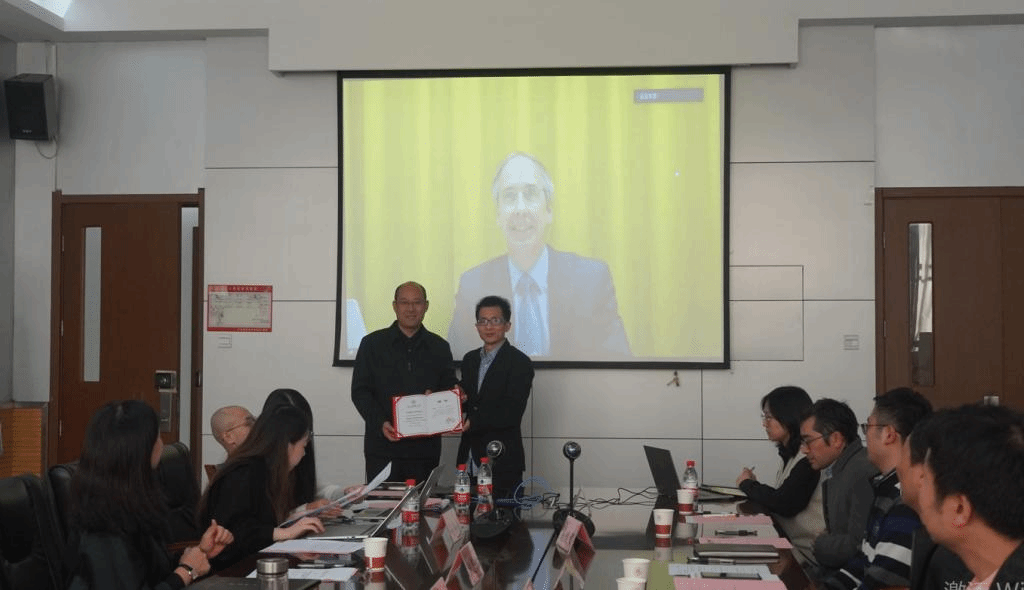 姚若侠宣读了《英国365集团关于聘请沃尔克·德克特为公司兼职教授的决定》。李磊为Volker Deckert教授颁发聘书(由合作教授张正龙教授代领)。