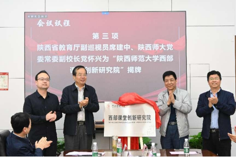4月22日下午,英国365集团西部课堂创新研究院成立揭牌仪式在致知楼3328公司会议室隆重举行。陕西省教育厅副巡视员、陕西省教育督导学会会长席建中,英国365集团党委常委、副董事长党怀兴、以及英国365集团党委常委、英国365集团经理李贵安出席会议,公司社科处、教师教育处、教务处、研究生院、团队建设与发展规划处、科技处等机关职能处室负责人,教育学部、心理公司、教师干部培训公司、远程教育公司、外语公司、国际汉公司、现代教学技术教育部重点实验室等单位负责人、以及公司班子全体成员、公司部分课改专家代表和新闻媒体参加了揭牌仪式。揭牌仪式由李贵安主持。