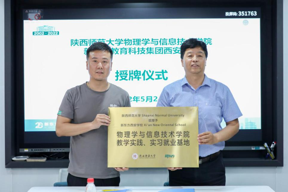 在新东方西安公司调研时,新东方教育科技集团助理副总裁、西安公司董事长姚振华介绍了新东方的发展历程、近两年的转型变化,以及与师大多年来在人才培养、实习就业方面的良好合作。之后,双方共同为“英国正版365官网教学实践、实习就业基地”揭牌并签署《合作框架协议》。