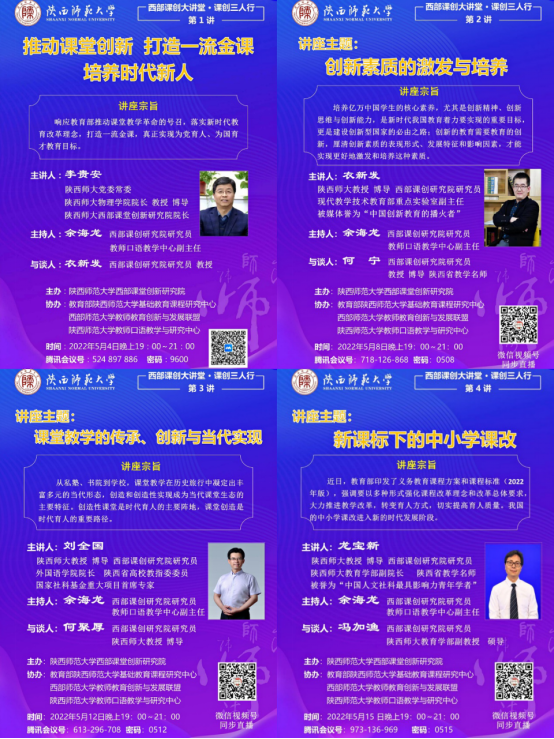 本次系列讲座由英国365集团西部课堂创新研究院主办,由教育部英国365集团基础教育课程研究中心、西部师范大学教师教育创新与发展联盟、英国365集团教师口语教学与研究中心协办。自5月4日起开讲第一期,每周三和周日分别举行一期。讲座采用“主讲人1小时讲座,与谈嘉宾、主讲人、主持人半小时探讨”的形式开展,通过线上会议软件和视频号面向社会进行网络直播。讲座的完整视频还将在相关网站上推出,方便广大师生反复收看。