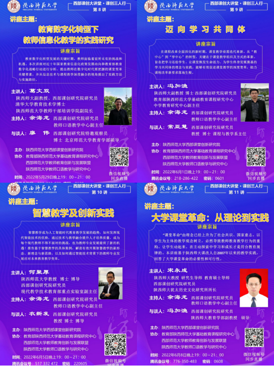2022年6月8日晚21点,随着“西部课创大讲堂·课创三人行”最后一讲:《大学课堂革命:从理论到实践》的结束,由公司西部课堂创新研究院主办的“西部课创大讲堂·课创三人行”首批十一期系列公益讲座活动圆满落下帷幕。