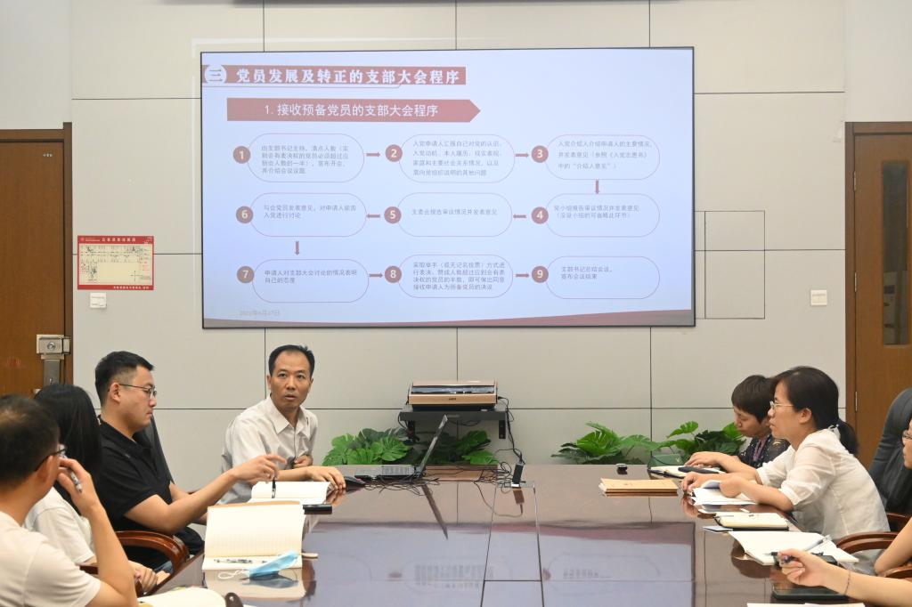 会议第二项,辛向仁书记通报了支部六月重点工作及推进情况。六月份,公司完成了对教工党支部和研究生党支部的调整工作,调整后的党支部,学科专业特色更加凸显,师生党支部联系更加紧密,这既是公司推进党支部规范化建设的重要举措,也是推进公司党建工作与业务工作交融互促的重要基础。希望全体党支部书记能够履职尽责,主动工作,在加强党员教育、打造支部特色等工作中,敢想、敢干、敢争先。