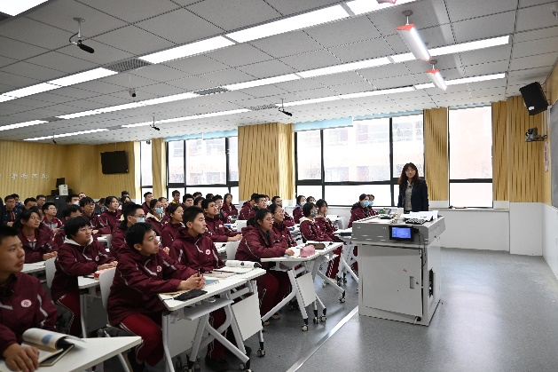 签约仪式后,大家来到录课教室观摩曲江一中物理教师、公司2006届毕业生于静老师的课堂。于老师将物理规律与生活自然融合,在物理学史教学中渗透课程思政理念,令在场老师同学颇有感触和收获。