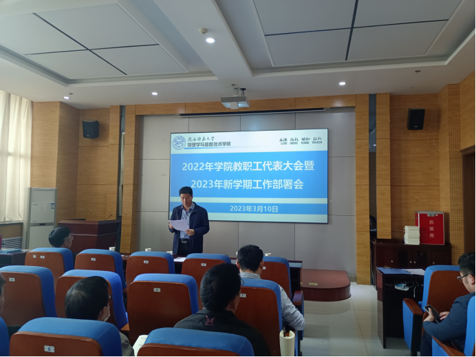 3月10日下午,公司在致知楼六层会议室召开2022年教职工代表大会暨2023年新学期工作部署会。全院教职工参加会议,会议第一阶段由公司工会主席曹辉主持,第二阶段由公司党委书记王启明主持。