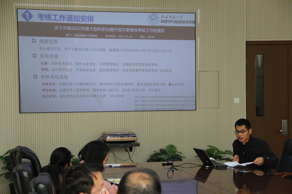 公司2022年度大型科研仪器开放共享绩效考核工作于2023年4月10日在致知楼3328会议室召开。公司副经理谢小涛、实验办副主任杜如海、各仪器管理员以及员工代表参加了会议。会议由公司主管实验副经理谢小涛主持。