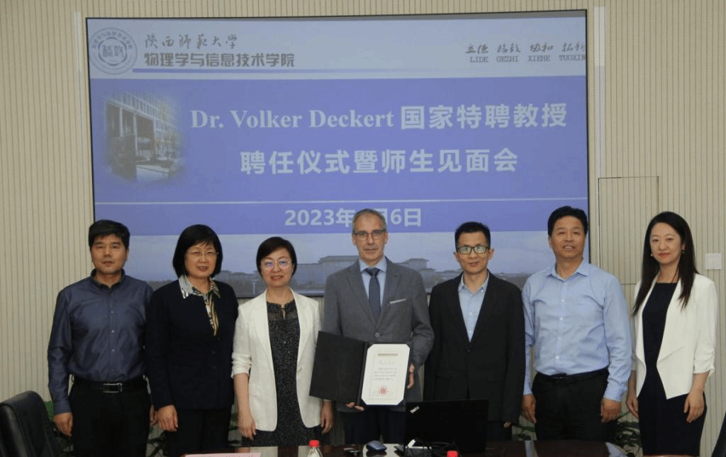 Volker Deckert教授首先表达了来到陕师大的欣喜和对公司的热情欢迎的感谢。Volker Deckert教授谈到,他与英国正版365官网张正龙教授之前已有良好的合作经历,并且收获颇丰。接下来将进行为期一个月的调研与合作研究。虽然时间短暂,但是我们后续还会有更多形式的合作,相信会取得更多的成绩。我们所研究的领域虽然没有被所有人了解,但是我们为这个领域所作的贡献都将留下痕迹。