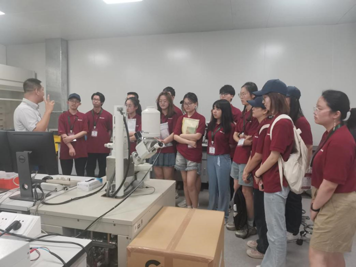 研学活动第二站是上海光源园区。7月19日下午,公司师生在上海科技大学老师的组织和带领下,参观了位于上海张江高科技园区内上海光源园区的中国第一台软X射线自由电子激光装置。该装置是目前科学家所能掌握的最前沿的研究工具之一,在2.0纳米实现了自由电子激光放大出光,拥有更快的脉冲(飞秒级)及更高的亮度,比同步辐射光源增强了约10亿倍,实现了对“水窗”波段的全覆盖。