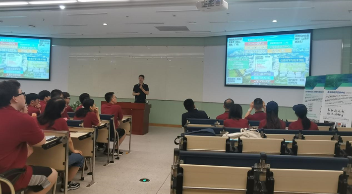 此次游学活动的第一站,是位于上海市浦东新区张江高科技园区的国家“双一流”建设高校上海科技大学。7月19日上午,上海科技大学物质科学与技术公司的徐旭光副经理为研学师生介绍了上海科技大学及物质公司的建设历程以及目前的教学和科研体制。讲座结束后,物质公司的江玉海、刘小井等十几位教授及部分研究生分别为公司师生介绍了各科研团队的研究方向与近期学术进展,员工们针对物质大厅内的学术海报与教授们进行了深入交流和学习。7月19日傍晚,师生参观了上海科技大学物质公司的拓扑物理实验室、微纳加工实验室、电镜中心等。通过参观,员工们看到了精密仪器在各种极端条件下的运作,了解了科学前沿研究的先进实验平台及精密的大型装置,感受到了物理实验的魅力,也更加坚定了继续从事物理科学研究的决心。