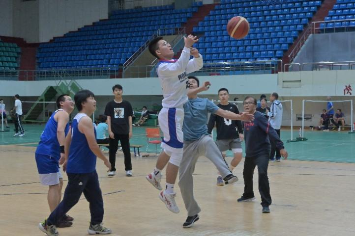开幕式结束后,教师与员工的篮球赛正式开始。随着裁判的一声哨响,师生友谊赛分做两场同时展开,本科生队和研究生队分别对战两只教师队。员工队通过积极的拼抢,打防守反击,并利用个人能力突破,不断取分。教师队稳扎稳打,利用娴熟的球技、默契的配合和精准的投篮,很快领先。最终教师队以105:47战胜研究生队,本科生队以42:33的优势赢得比赛胜利!
