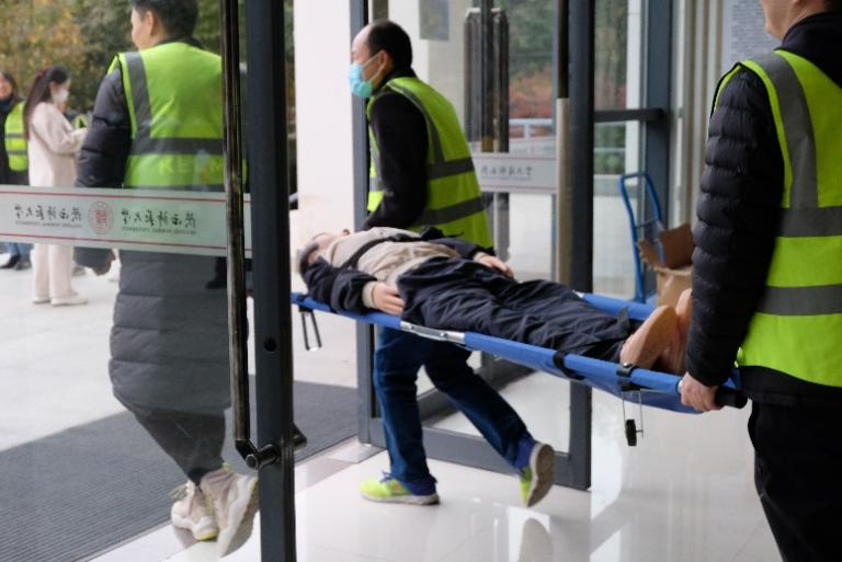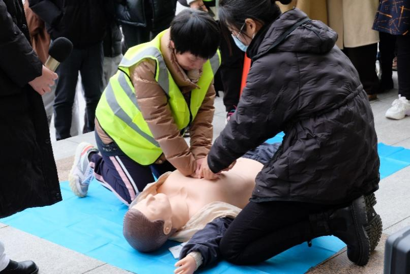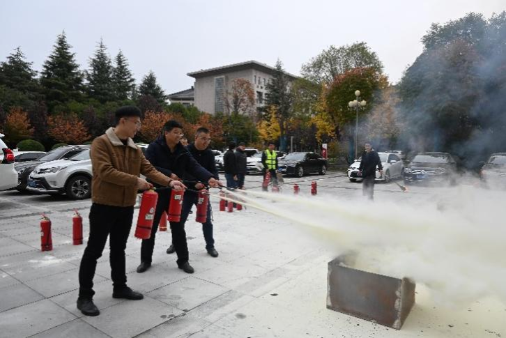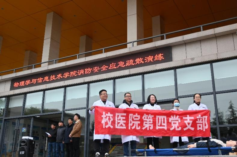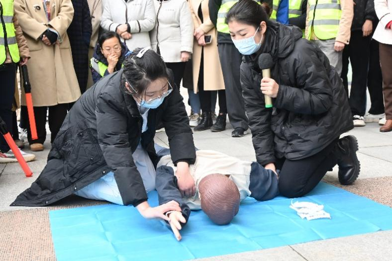 演练的最后环节,校医院第四党支部医护人员详细讲解心肺复苏等急救知识,并进行实操展示,保卫处老师详细讲解了灭火器的种类、使用方法及注意事项,并指导师生进行实操灭火演练,参加演练的师生踊跃参与。
