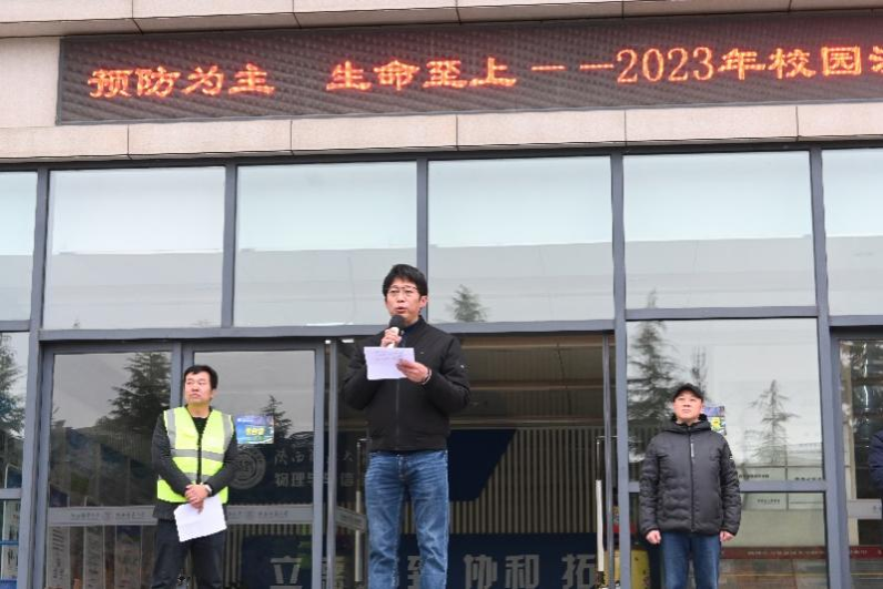 演练开始前,保卫部副部长(副处长)张炜强调了消防安全的重要性和开展消防演练的必要性,并对如何有效开展演练做了指导和提示。公司党委书记王启明指出,安全是公司事业发展的前提,是公司一切工作的生命线,希望大家高度重视,按照计划认真开展好本次演练,并提醒师生注意演练疏散安全。随后,王书记宣布消防灭火演练活动开始。