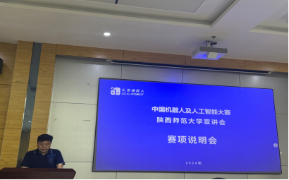 赛区秘书长李亚卓老师向大家介绍了大赛相关情况,内容涵盖了大赛的特点、背景、2023年陕西赛区基本情况和2024年工作安排等多个方面,全方位为参赛同学介绍了中国机器人及人工智能大赛。