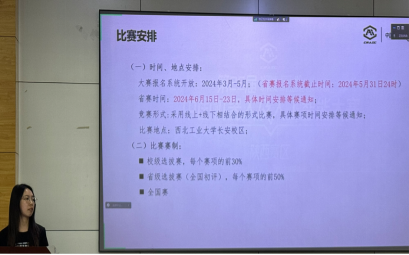 本次宣讲活动共有三项议程:首先是宣讲活动开幕式,之后介绍大赛相关情况,最后是陕西赛区推荐赛项介绍。