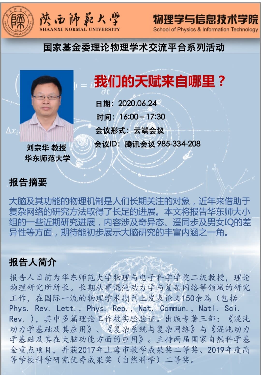 国家基金委理论物理学术交流平台系列活动:我们的天赋来自哪里?