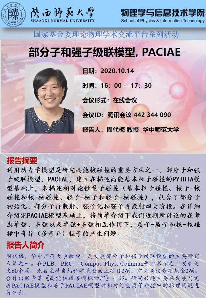 国家基金委理论物理学术交流平台系列活动:部分子和强子级联模型,PACIAE