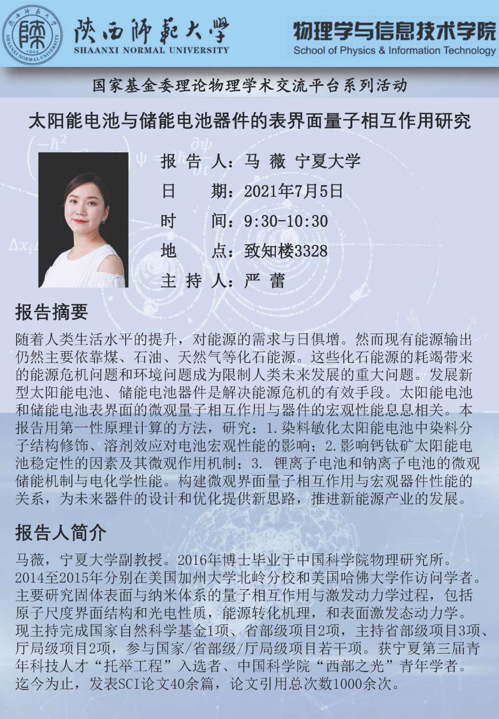 基金委理论物理平台系列活动:太阳能电池与储能电池器件的表界面量子相互作用研究