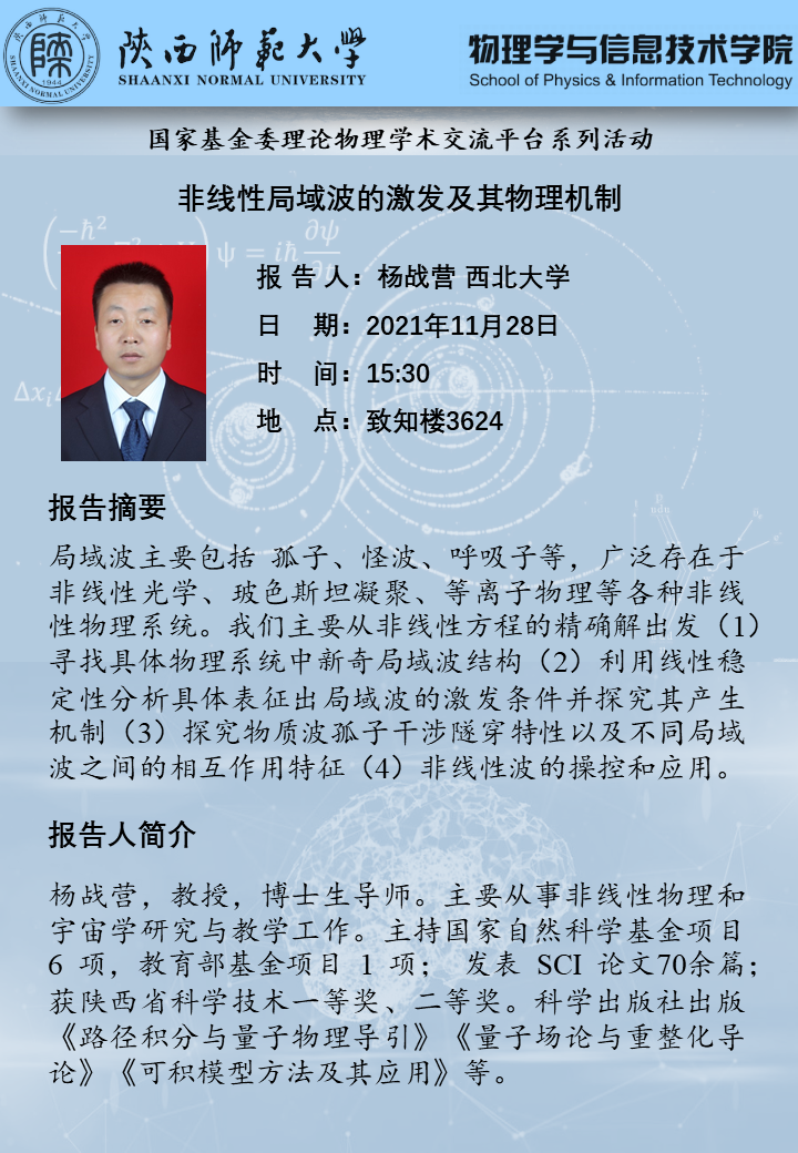 恒元物理学讲座(第206期):基金委理论物理平台系列活动