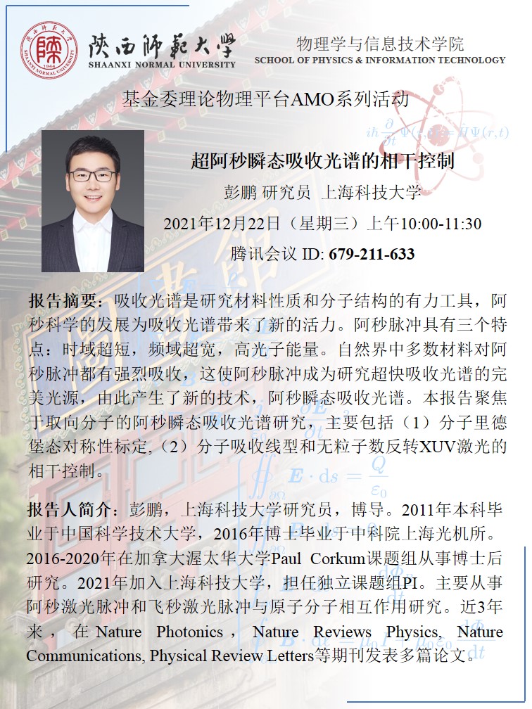 基金委理论物理平台AMO系列活动:阿秒瞬态吸收光谱的相干控制”