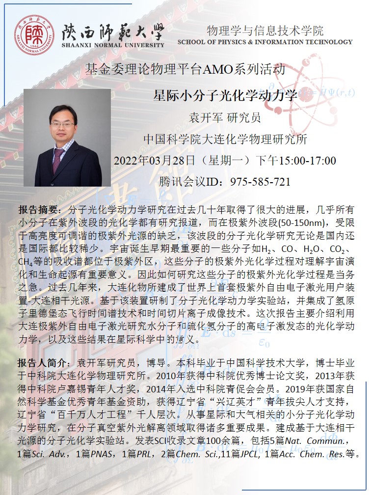 基金委理论物理平台AMO系列活动:星际小分子光化学动力学