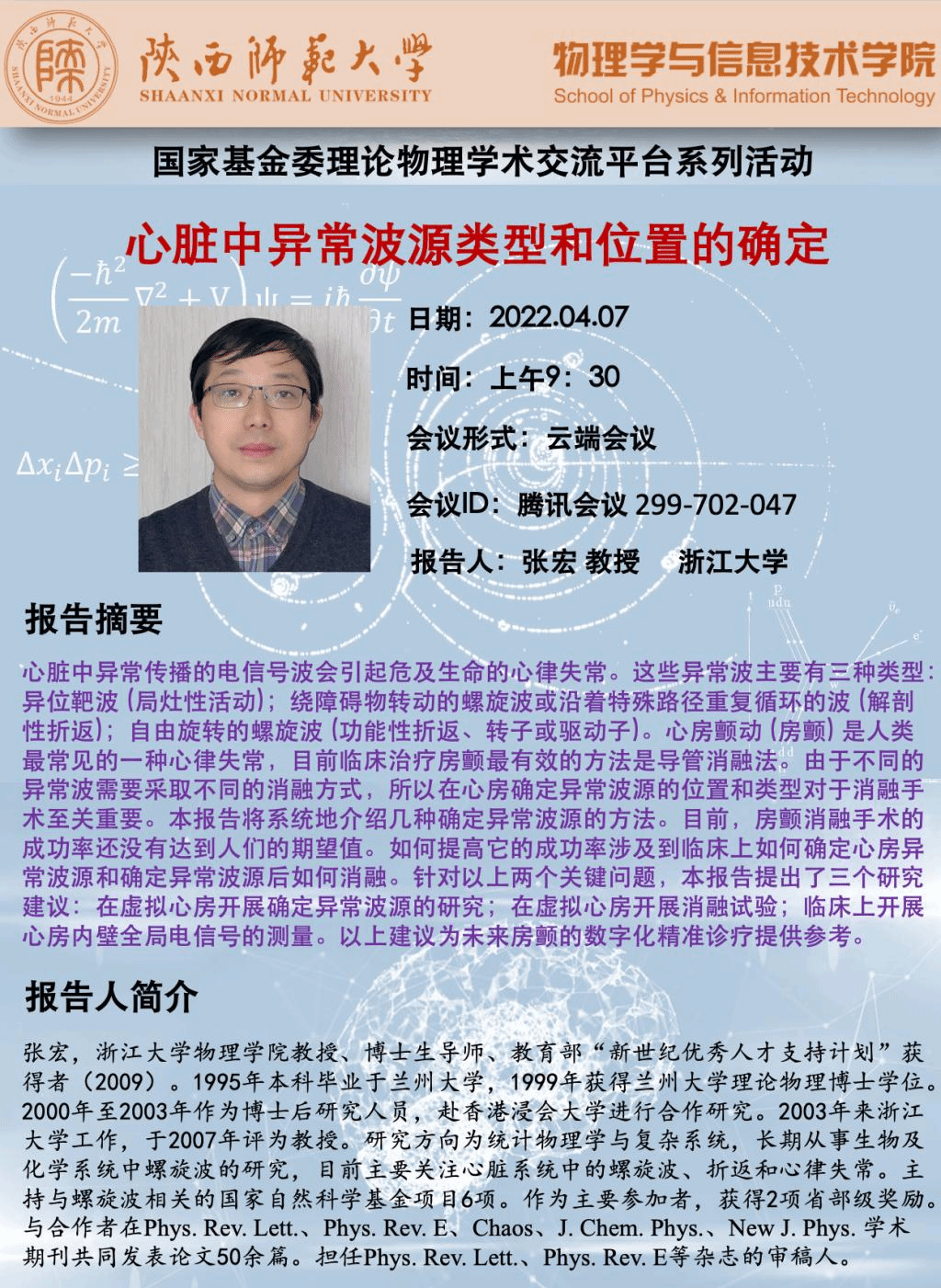 基金委理论物理平台系列活动:心脏中异常波源类型和位置的确定