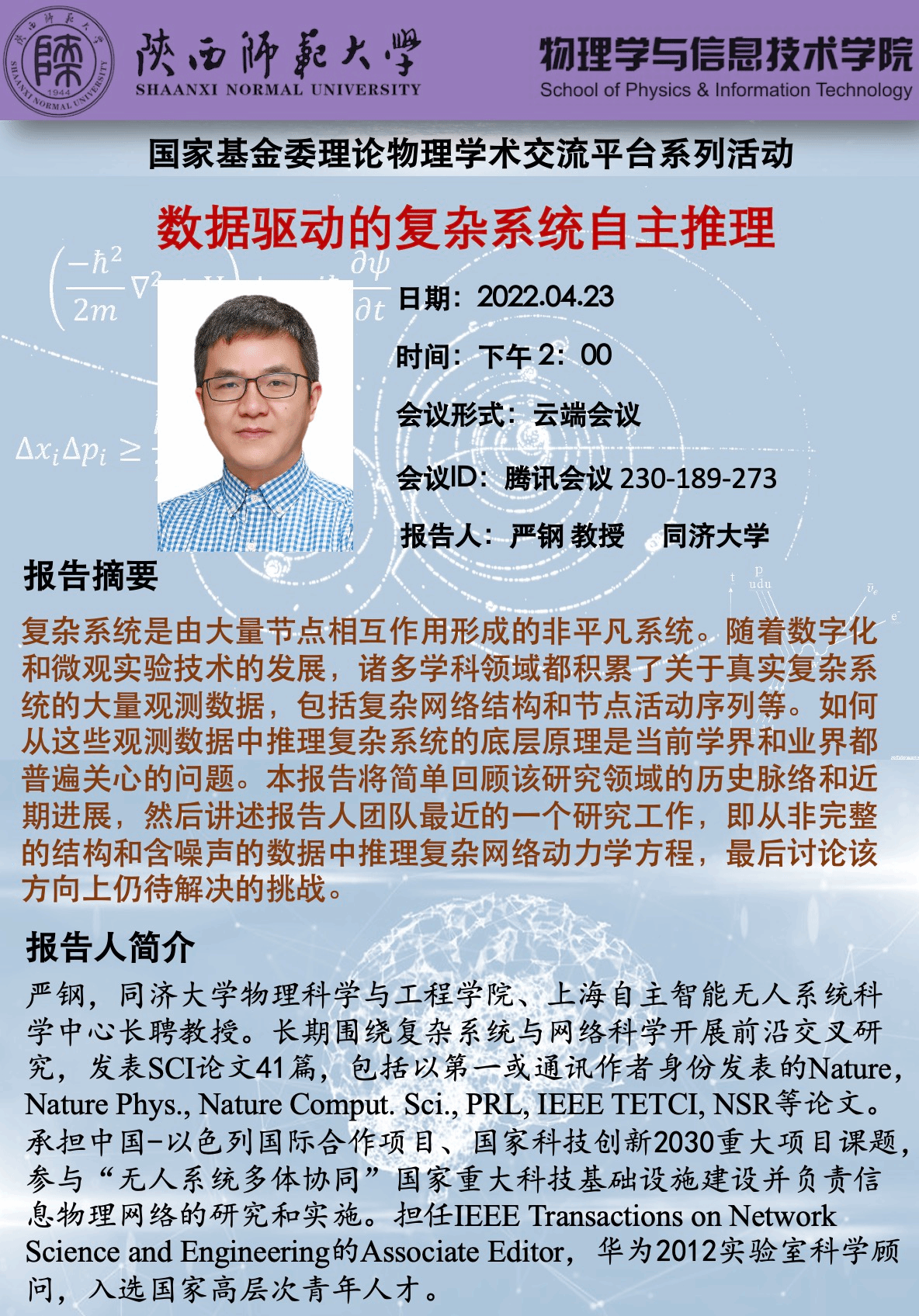 基金委理论物理平台系列活动:数据驱动的复杂系统自主推理