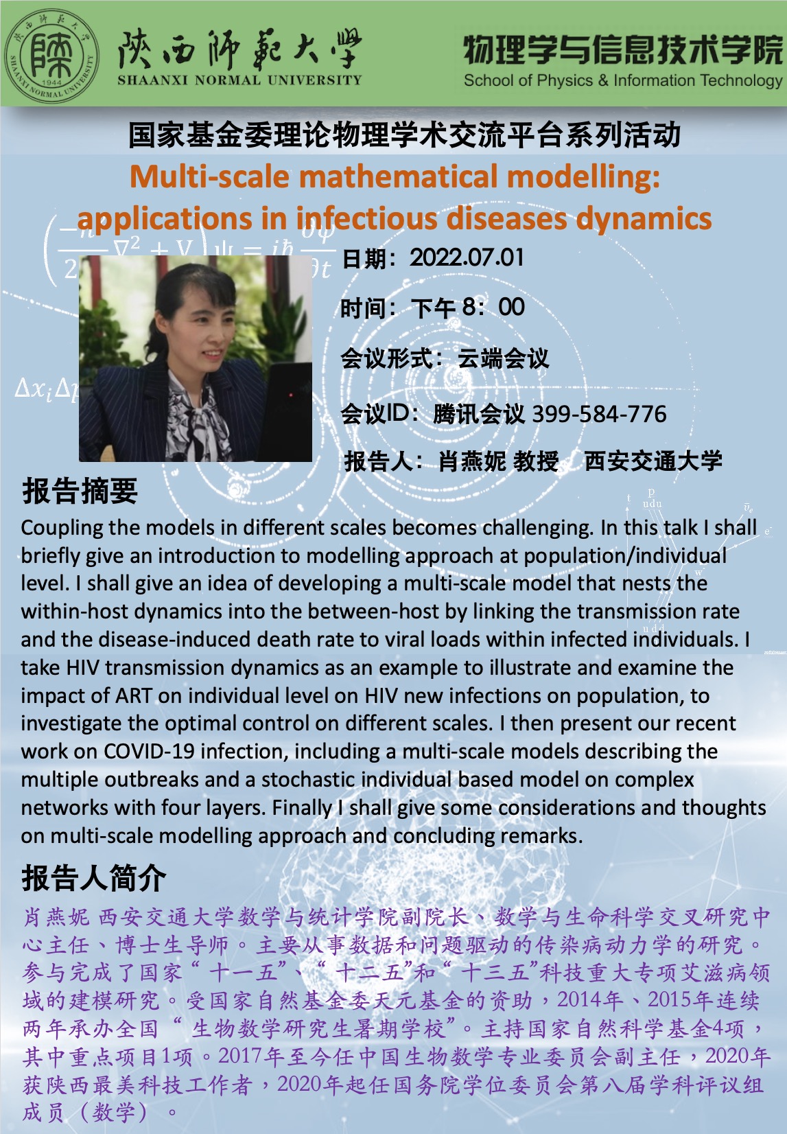 基金委理论物理平台系列活动:Multi-scale mathematical modelling:applications in infectious diseases dynamics