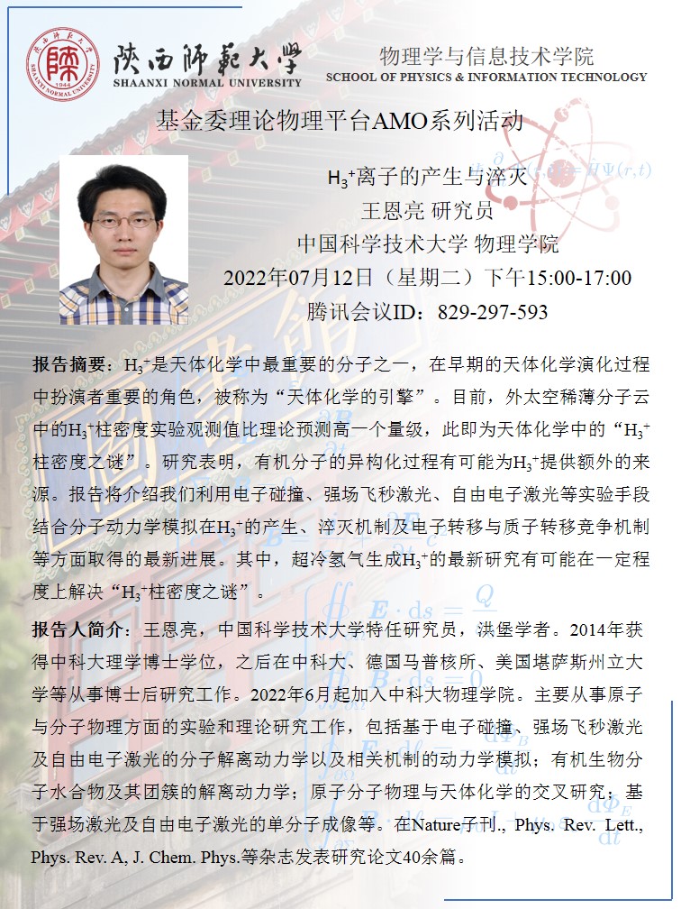 基金委理论物理平台AMO系列活动:H3+离子的产生与淬灭